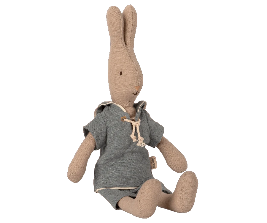 The bunny & rabbit collection is made of soft natural linen & cotton fabric – which gives a lovely handfeel and look. This rabbit is dressed in a playful sailor set. Size: Bunny/Rabbit 1 Height: 26 cm Age: All ages Wash: 30°C Material: Cotton/Linen Filling: Recycled polyester/Pe Pellets