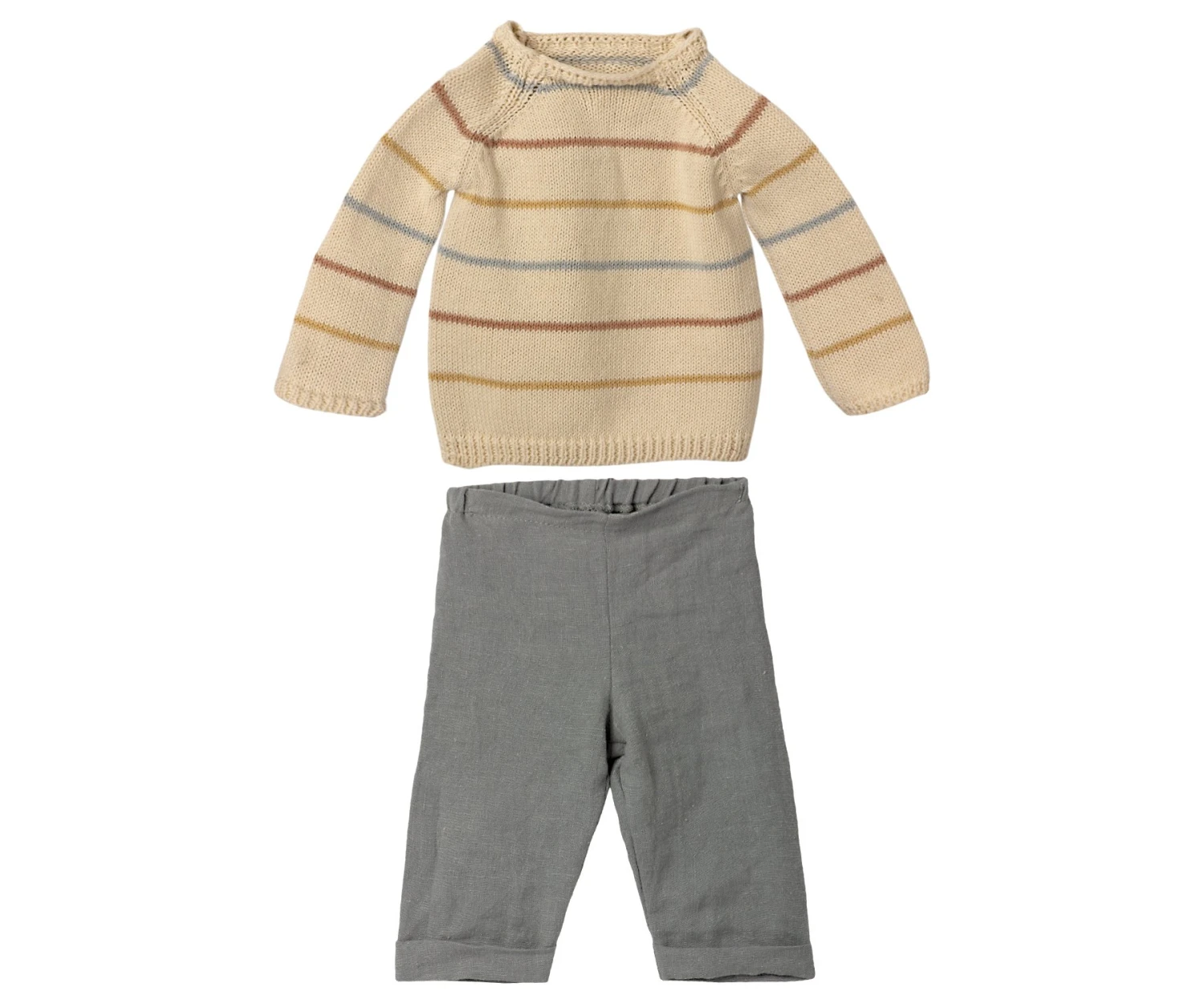The bunny & rabbit collection is made of soft natural linen & cotton fabric – which gives a lovely hand feel and look. This rabbit is dressed in a beautiful striped sweater and soft pants. Product details Size: Bunny/Rabbit 5 Height: 75 cm Age: All ages Washing instruction: 30°C Material: Cotton / Linen Filling: Recycled polyester/Pe Pellets Maileg (pronounced My’lye) is a brand of charming Danish-designed toys created to inspire our children’s favourite playtime stories. By bringing storybook whimsy to everyday moments, Maileg toys help children explore the pure and simple wonder of imagination. Beloved for their heartwarming personalities, Maileg toys show playfulness and charm in every last detail. Theirs is a timeless world filled with beautiful accessories and settings to be collected, cherished and shared with friends and family for generations.