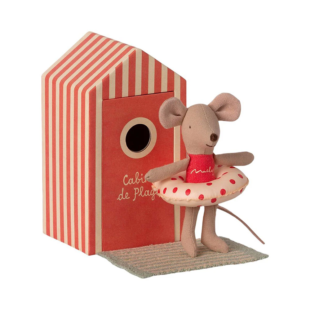 Vacation time. This mouse ia ready for a day at the beach, with all needed accessories and a beautiful striped beach house. As she is the smallest family member she of course has a float to keep her safe.