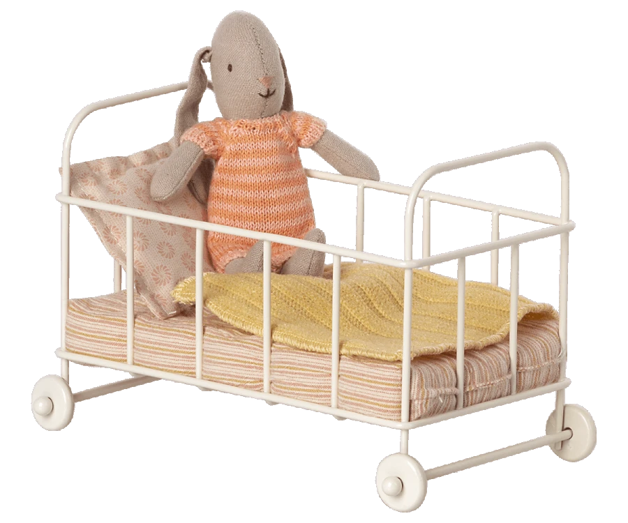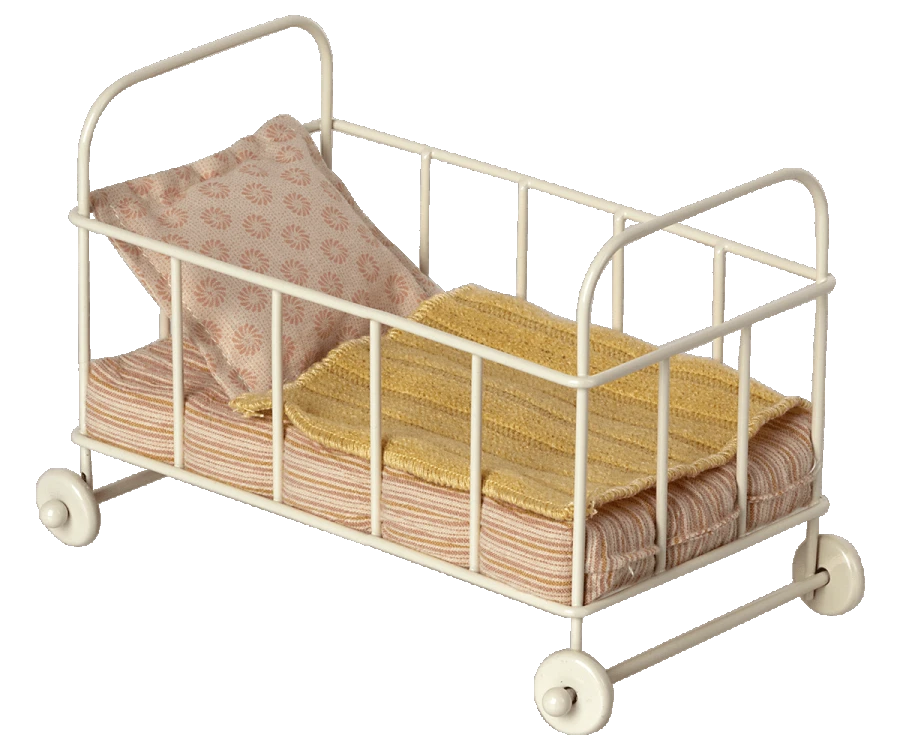A cosy cot bed made of metal, it comes with a mattress, blanket, and pillow. You can tuck in your micro sized friends as well as the small mice. Product details Height: 10 cm Width: 16 cm Age: 3 YR + Wash: Surface wash Material: Metal/Cotton Filling: Polyester Maileg (pronounced My’lye) is a brand of charming Danish-designed toys created to inspire our children’s favourite playtime stories. By bringing storybook whimsy to everyday moments, Maileg toys help children explore the pure and simple wonder of imagination. Beloved for their heartwarming personalities, Maileg toys show playfulness and charm in every last detail. Theirs is a timeless world filled with beautiful accessories and settings to be collected, cherished and shared with friends and family for generations.