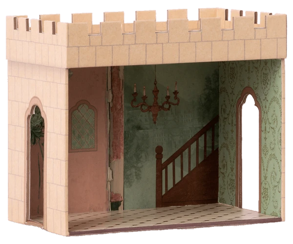 Ein schönes Zuhause für alle Mäuse. Es besteht aus Karton, mit einzigartigen Maileg-Drucken. Nutze es als kleines Zuhause für die Mäuse oder als Verbindungshalle für die beiden Maileg-Schlösser. Größe: Maus Höhe: 25 cm Breite: 29 cm Altersempfehlung: +3 Jahre Reinigung: Keine angabe Material: FSC Papier