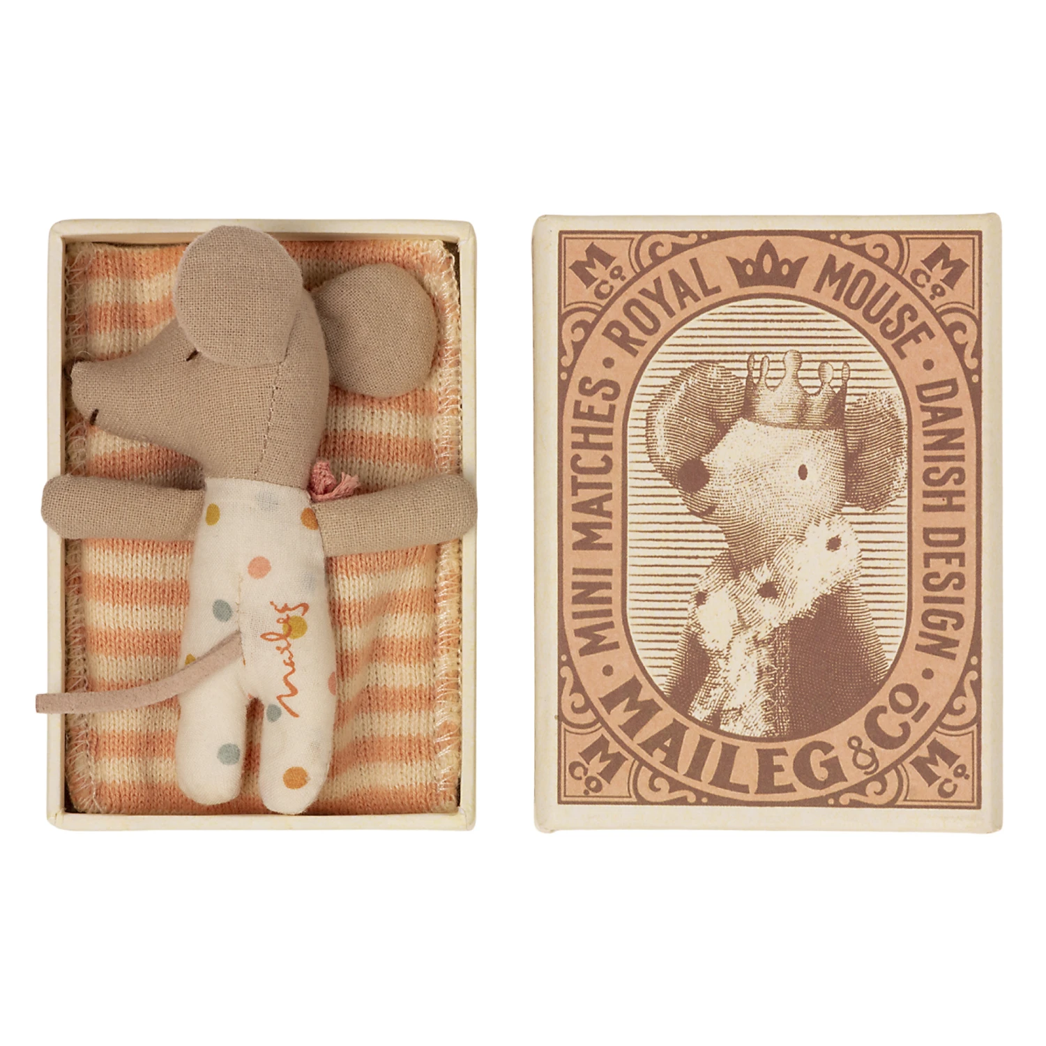 Award winning Danish designers Maileg are renowned for their little matchbox mice. Beautifully crafted from 100% cotton, these mice are much loved for their timeless, nostalgic quality and collect-able appeal. Collect a whole family for hours of delightful play.