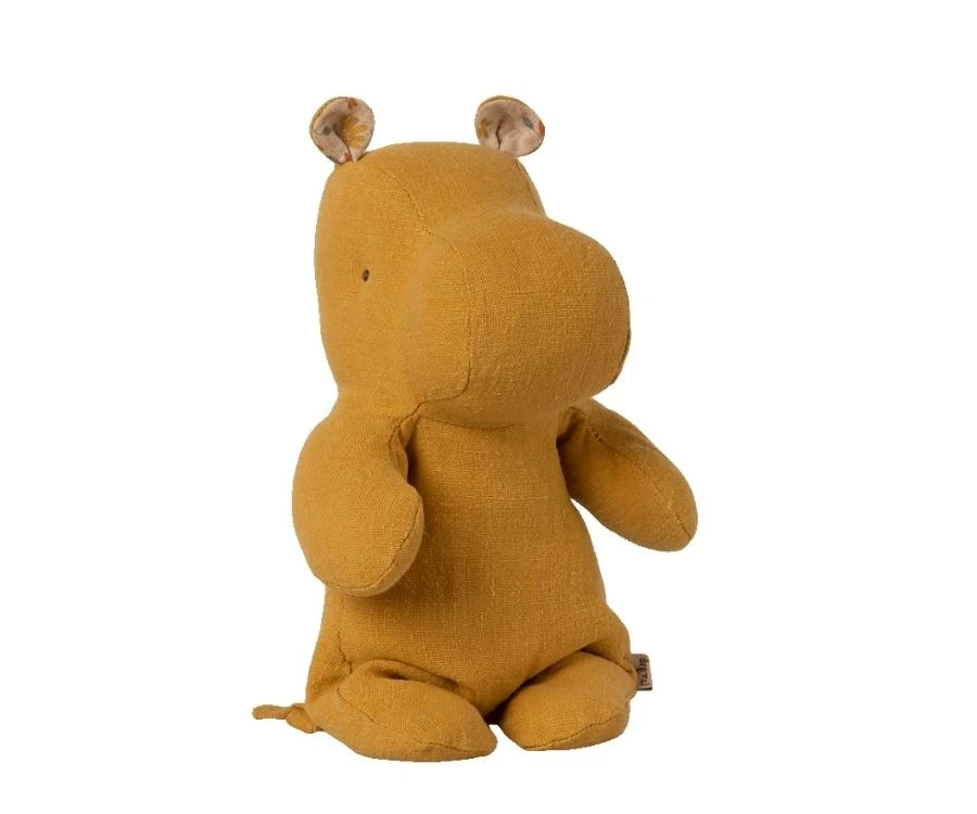 Wenn du das ewige Blau und Rosa satt hast ist der kleine Hippo von Maileg in strahlendem Ocker das Richtige für dich und dein Baby. Die Ohren sind mit Blümchenstoff gefüttert sonst kommt die reduzierte Form ohne viel Schnickschnack aus und doch ist der kleine Geselle ganz besonders liebenswürdig. Falls er dennoch einmal weggelegt werden sollte erleichtert das beschwerte Hinterteil dass er sitzen kann. Sehr angenehme Haptik durch den weichen Leinenstoff. Höhe: ca. 22 cm Material Leinen mit Füllung aus recyceltem Polyester und Granulat Farbe: Dusty Yellow. Geeignet ab 0 Jahren.