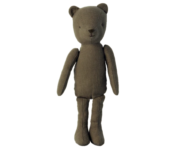 The Teddy bear family is a sweet collection of 3 different sizes of Teddy bears. They are made of soft linen and has a vintage look that will make the memories pop up. Founded in 1999, Maileg is a Danish toy brand founded by illustrator and designer Dorthe Mailil. Known for their imaginative, playful toy designs that range from mice in matchboxes, to giant bunnies, alongside all the accessories and clothing to dress up her creations. The designs skilfully blend the Scandinavian aesthetic with the tradition of animal soft toys, making Maileg so popular amongst children and their parents. Product detailsItem number 16-0802-00Size : Teddy juniorHeight : 25 cmAge: All agesWashing instruction: 30 degreesMaterial: Linen