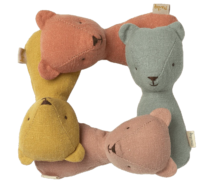 The Teddy rattle has a perfect fit for a baby’s hand and has a rattling sound that will stimulate the baby. It is made of soft linen which gives the Maileg vintage look.