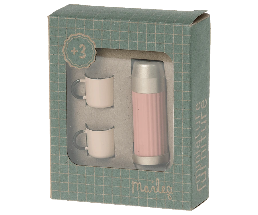 When the Maileg friends go out for a hike or field trip it is necessary to bring tea. This small set is made with the finest details that make the product very authentic. You can screw the lid off and the play can start.