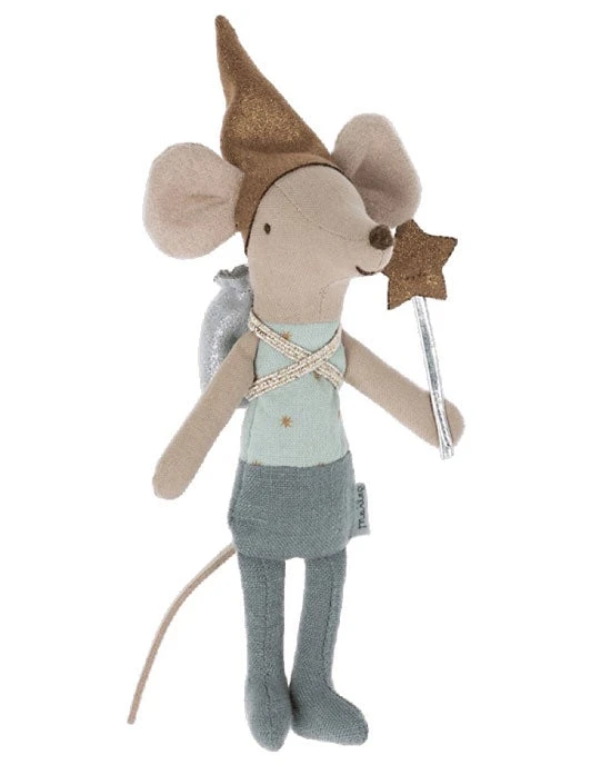 At night the tooth fairy spreads fairy dust, collects teeth, brings treats, and makes sure you have sweet dreams. Dressed magically in soft tones and with a shiny hat, and a sparkly backpack – includes tooth box and matchbox. Backpack may vary in color. Height : 16 cm Age: All ages Washing instruction: Hand Wash Material: COTTON-POLYESTER About Maileg In a busy world of bright lights, bells and whistles, where new stories are continually impressed upon us… Maileg is a world in which matchboxes can be beds for mice; princesses make perfect teatime companions; and adventures can be found on a friendly forest walk. It is a world where cats and mice are friends. Ours is a world of childhood imagination – and this is a world we value. Maileg (pronounced My’lye) is a brand of charming Danish-designed toys created to inspire our children’s favorite playtime stories. By bringing storybook whimsy to everyday moments, Maileg toys help children explore the pure and simple wonder of imagination. Beloved for their heartwarming personalities, Maileg toys show playfulness and charm in every last detail. Theirs is a timeless world filled with beautiful accessories and settings to be collected, cherished and shared with friends and family for generations.