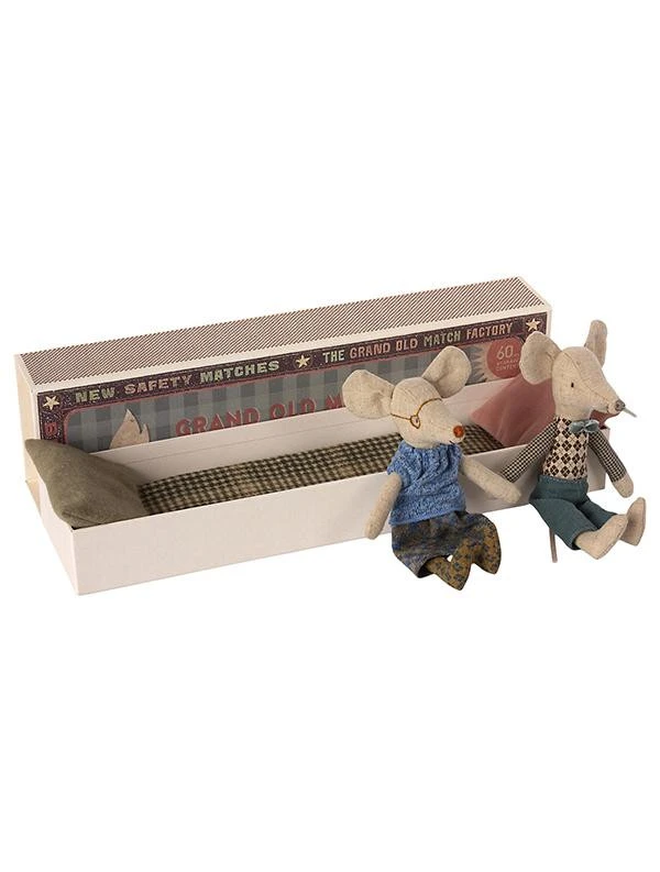 Tutti amiamo la nostra mamma e il nostro papà, ma tutti sanno che sono la nonna e il nonno che amano davvero viziare i bambini! La nonna e il nonno topo arrivano nella loro grande vecchia scatola di fiammiferi che è arredata con un materasso, un cuscino e una coperta. Dimensioni: topi; Dimensioni mamma/padre 15 cm, adatto per bambini dai 3 anni in su