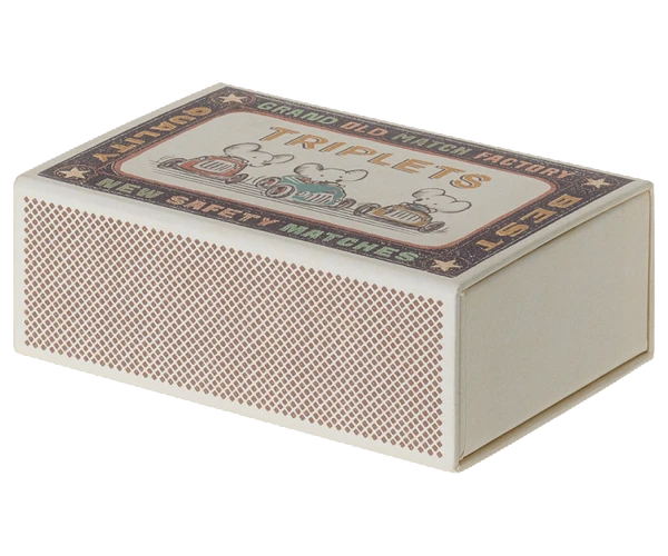 These lovely little mice make a perfect gift. The mice come with a perfect little matchbox bed, so after hours of play they are always ready to sleep tight. The clothes and bed linen are made of soft fabrics with unique prints and beautiful colours. DETAILS Triplet Mice, 9cm Material: Cotton/Linen. Age: 3+. Washing instruction: 30 degrees WHAT WE LOVE Founded by mother and designer Dorthe Mailil, Maileg has become our go to brand of toys that merge modern Scandinavian design with storybook whimsy and meticulous attention to detail.