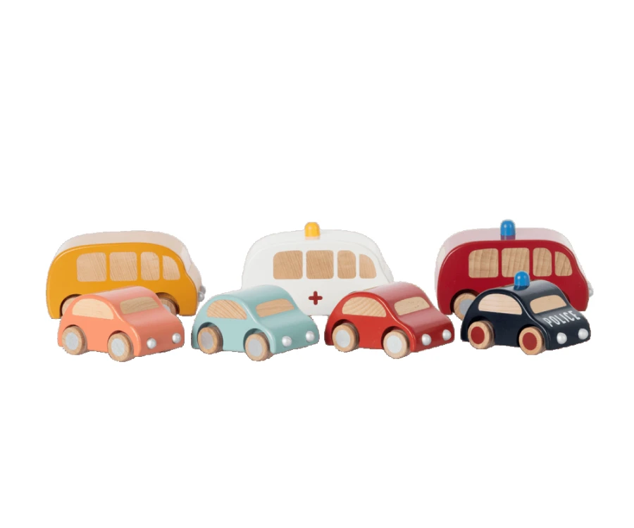 Le design de cette petite voiture en bois est simple et épuré. La voiture est en bois massif FSC et dispose d’une fonction de recul. Mélangez et associez les différentes voitures et bus pour que l’histoire sans fin commence.