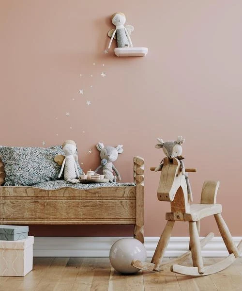 Part of Maileg’s Christmas collection this beautiful soft doll with gorgeous floral print body, golden hair and angel wings is the perfect stocking filler. Suitable from birth Height – 28cm Material – cotton/linen Washable at 30 degrees