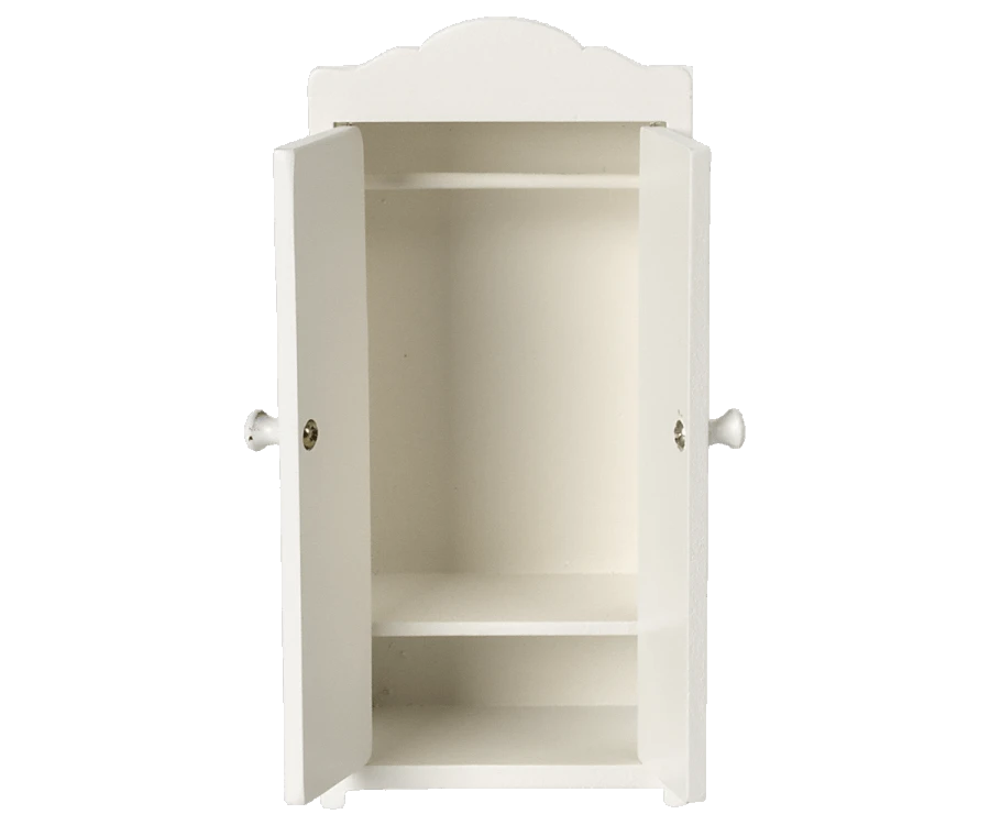A small closet made of FSC wood. It helps the mice family organizing their wardrobe. The closet comes with 3 golden hangers. Product details Height: 16 cm Width: 7 cm Age: 3 YR + Wash: Surface Wash Material: FSC Wood Maileg (pronounced My’lye) is a brand of charming Danish-designed toys created to inspire our children’s favourite playtime stories. By bringing storybook whimsy to everyday moments, Maileg toys help children explore the pure and simple wonder of imagination. Beloved for their heartwarming personalities, Maileg toys show playfulness and charm in every last detail. Theirs is a timeless world filled with beautiful accessories and settings to be collected, cherished and shared with friends and family for generations.
