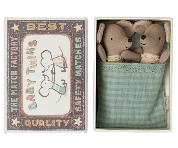 Nur eine Sache ist besser, als ein Baby zu haben … Wenn Du zwei von ihnen bekommst – Zwillinge. Diese Mäuse schlafen sicher in ihrem Schlafsack in einem Streichholzschachtelbett nebeneinander. Größe: Baby Maus Höhe: 9 cm Altersempfehlung: +3 Jahre Reinigung: 30°C Material: Baumwolle/Leinen Füllung: Recyceltes Polyester